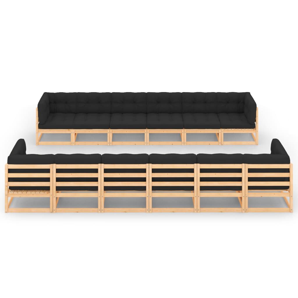 vidaXL 12 Parta Garðsófasett með Reykgráum Sessum Gegnheil Fura