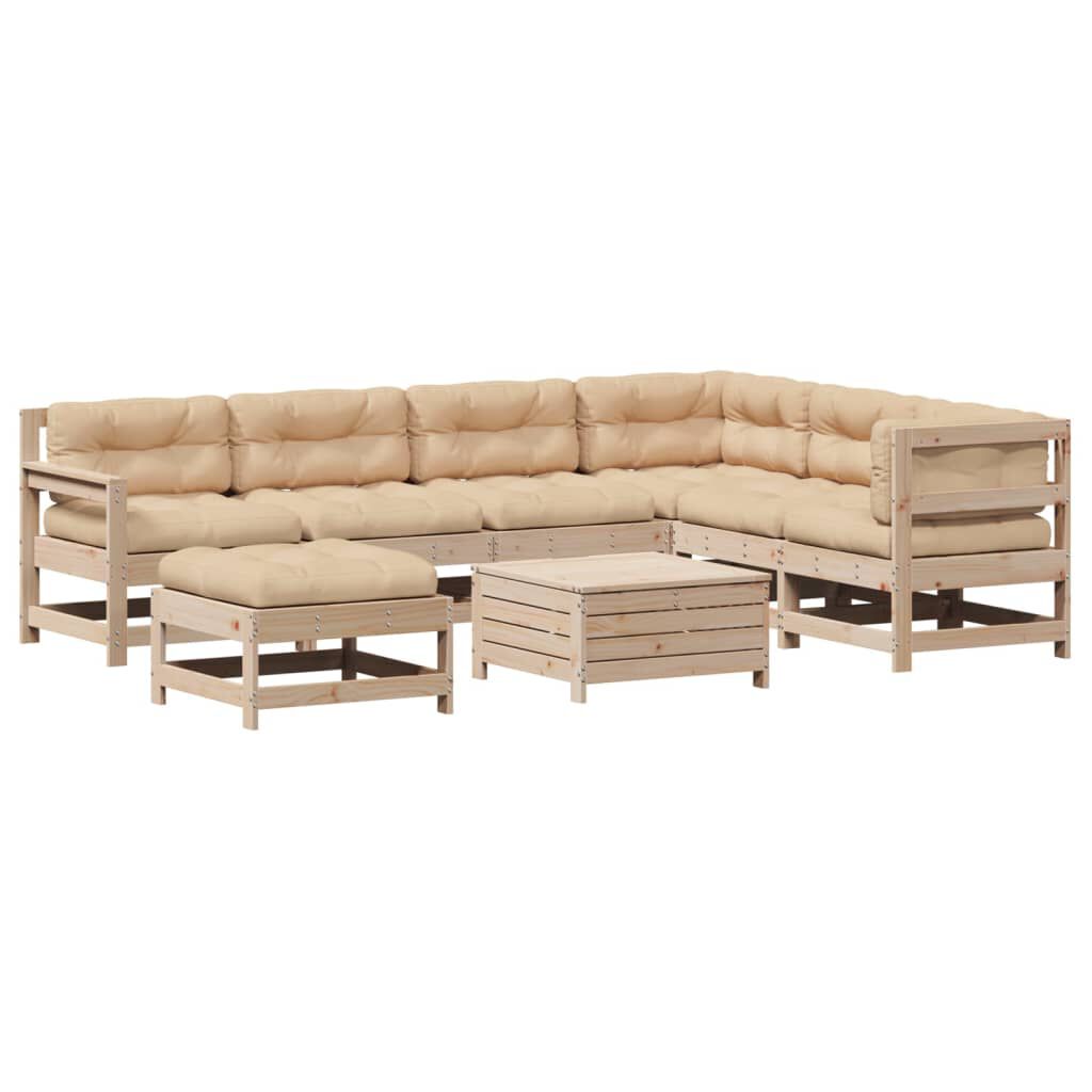 vidaXL 8 Parta Garðsófasett með Sessum Gegnheil Fura