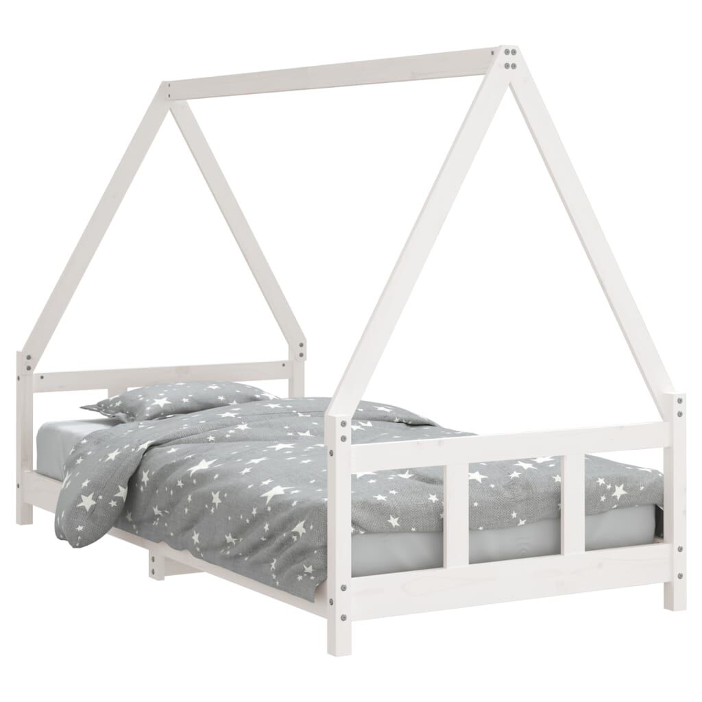 vidaXL Barnarúmgrind Hvít 90x190 cm Gegnheil Fura