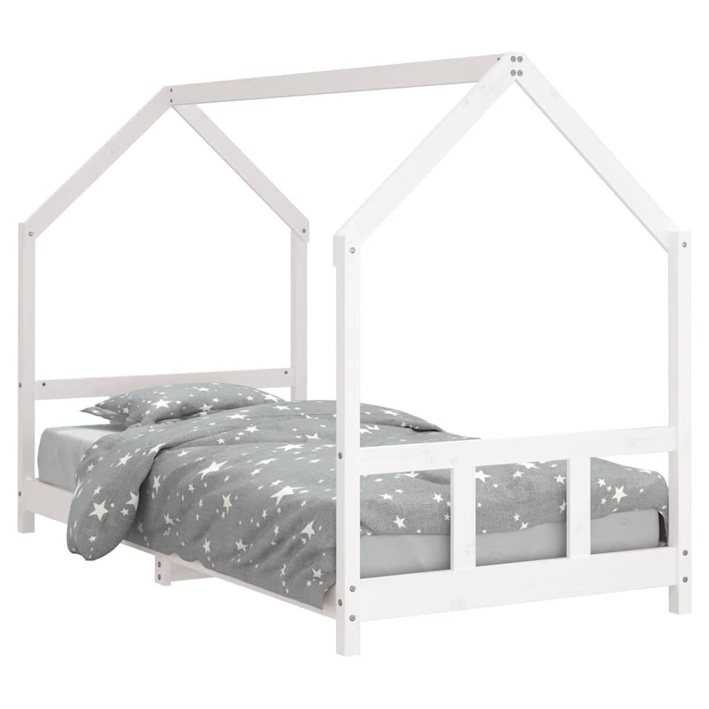 vidaXL Barnarúmgrind Hvít 90x200 cm Gegnheil Fura
