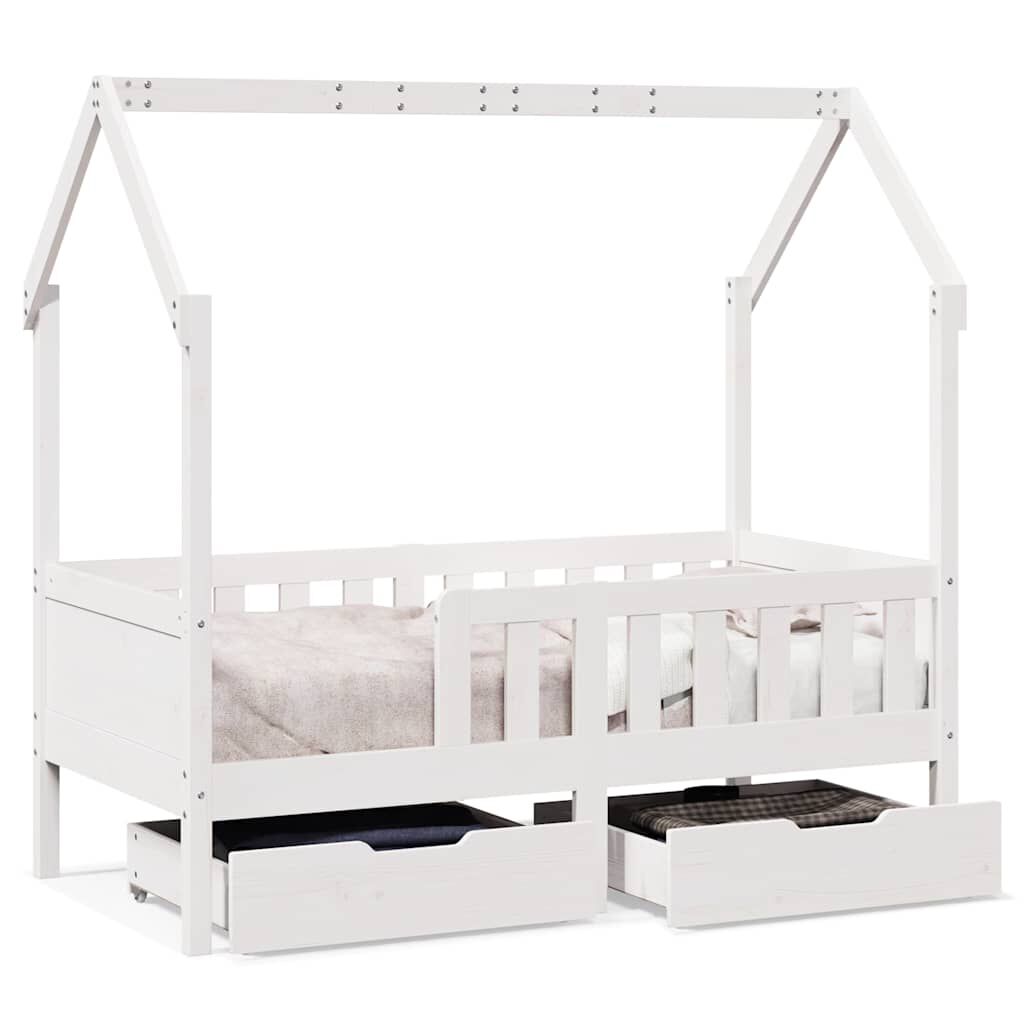 vidaXL Barnarúmgrind Skúffum án Dýnu 70x140 cm Gegnheil Fura