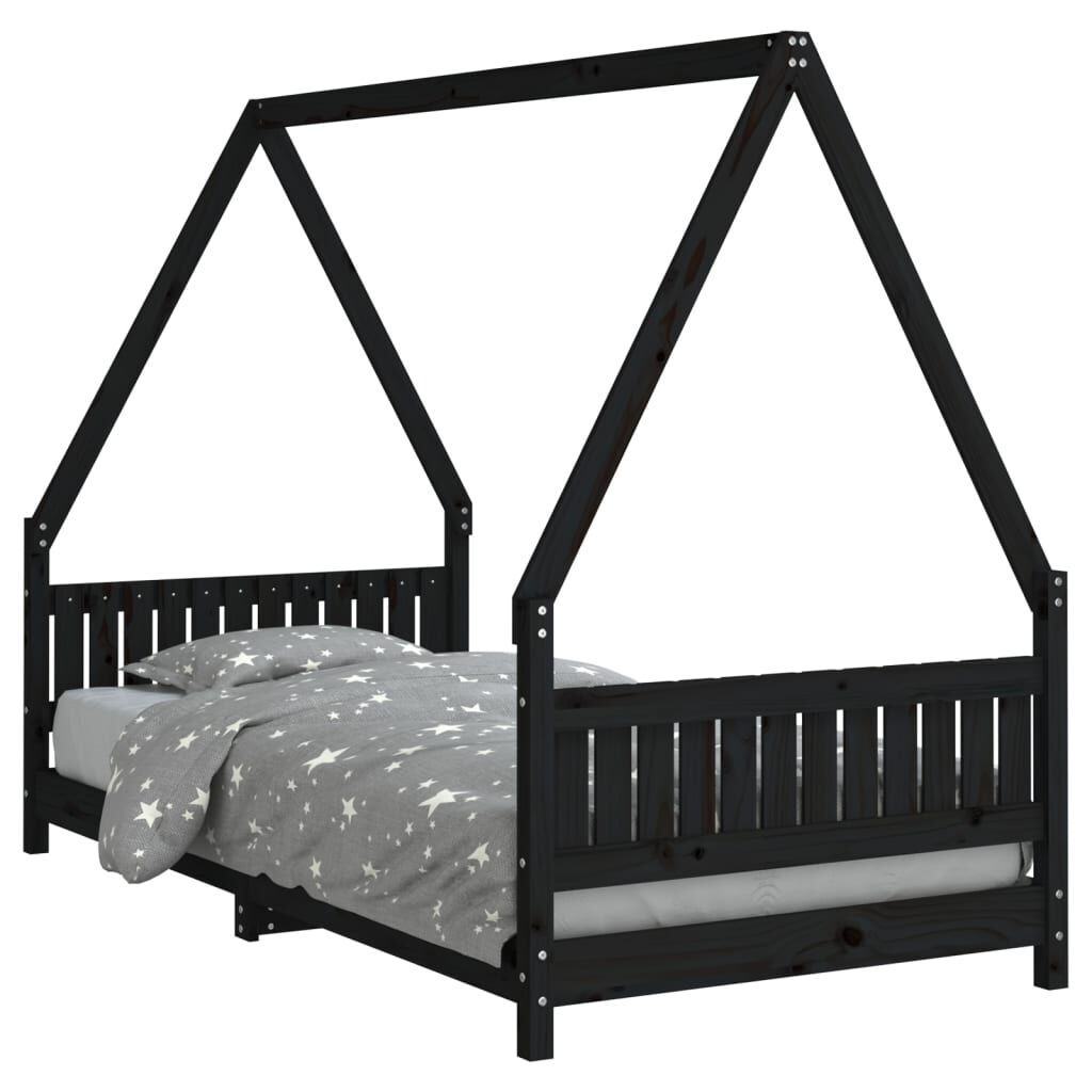 vidaXL Barnarúmgrind Svört 90x190 cm Gegnheil Fura