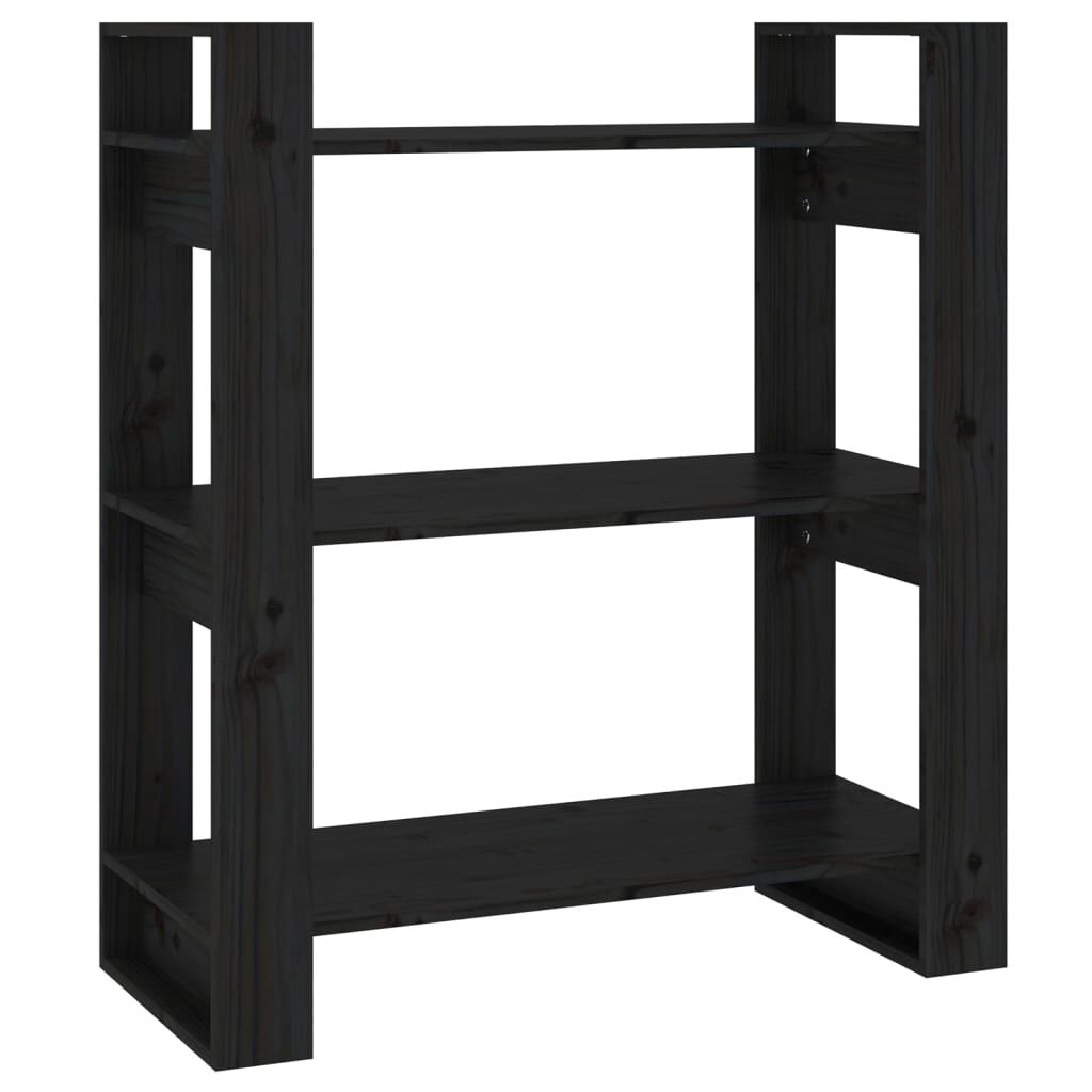 vidaXL Bókaskápur/Skilrúm Svart 80x35x91 cm Gegnheil Fura