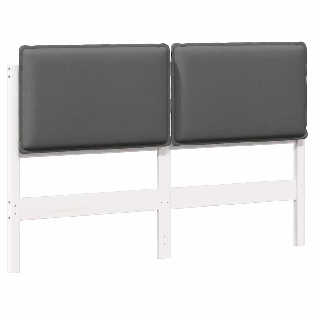 vidaXL Bólstruð rúmgafl Hvítur og ljósgrár 135 cm Solid furuhikk