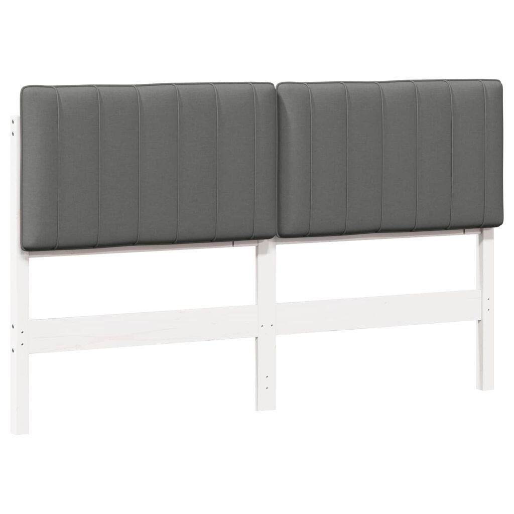 vidaXL Bólstruð rúmgafl Hvítur og ljósgrár 150 cm Solid furuhikk