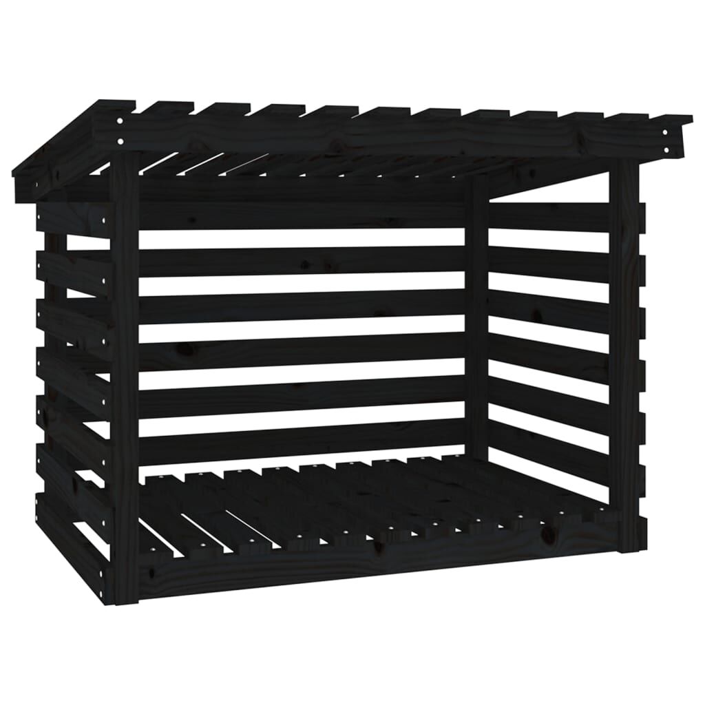 vidaXL Eldiviðarrekki Svartur 108x73x79 cm Gegnheil Fura