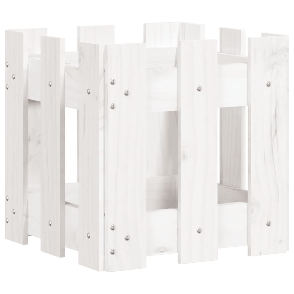 vidaXL Garðkróður með Girðingarhönnun Hvítt 30x30x30 cm Gegnheil Fura