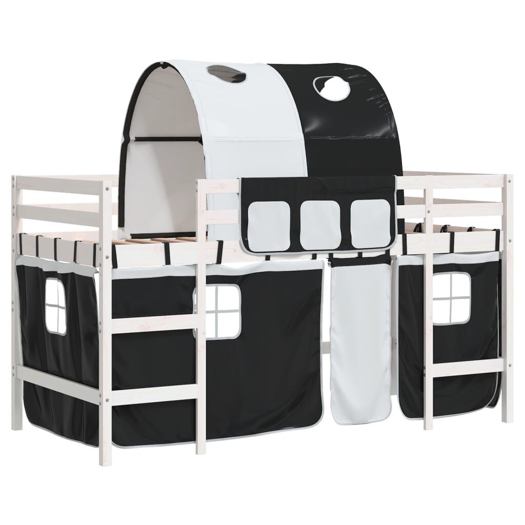 vidaXL Krakkakoja með Göngum Hvítur og Svartur 90x200 cm Gegnheil Fura