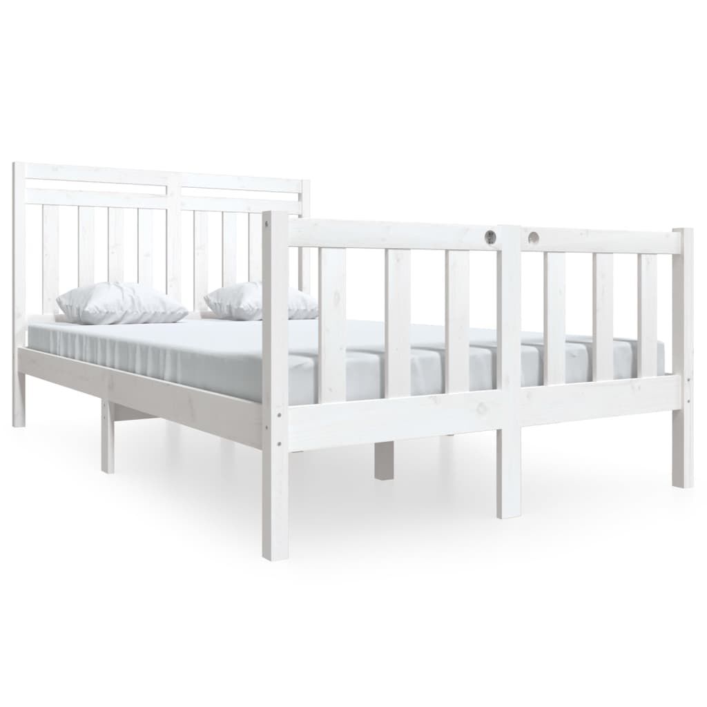 vidaXL Rúmgrind án Dýnu Hvít Gegnheill Viður Lítil Tvíbreið