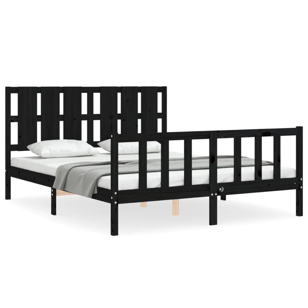 vidaXL Rúmgrind án Dýnu Svört Gegnheil Fura King Size