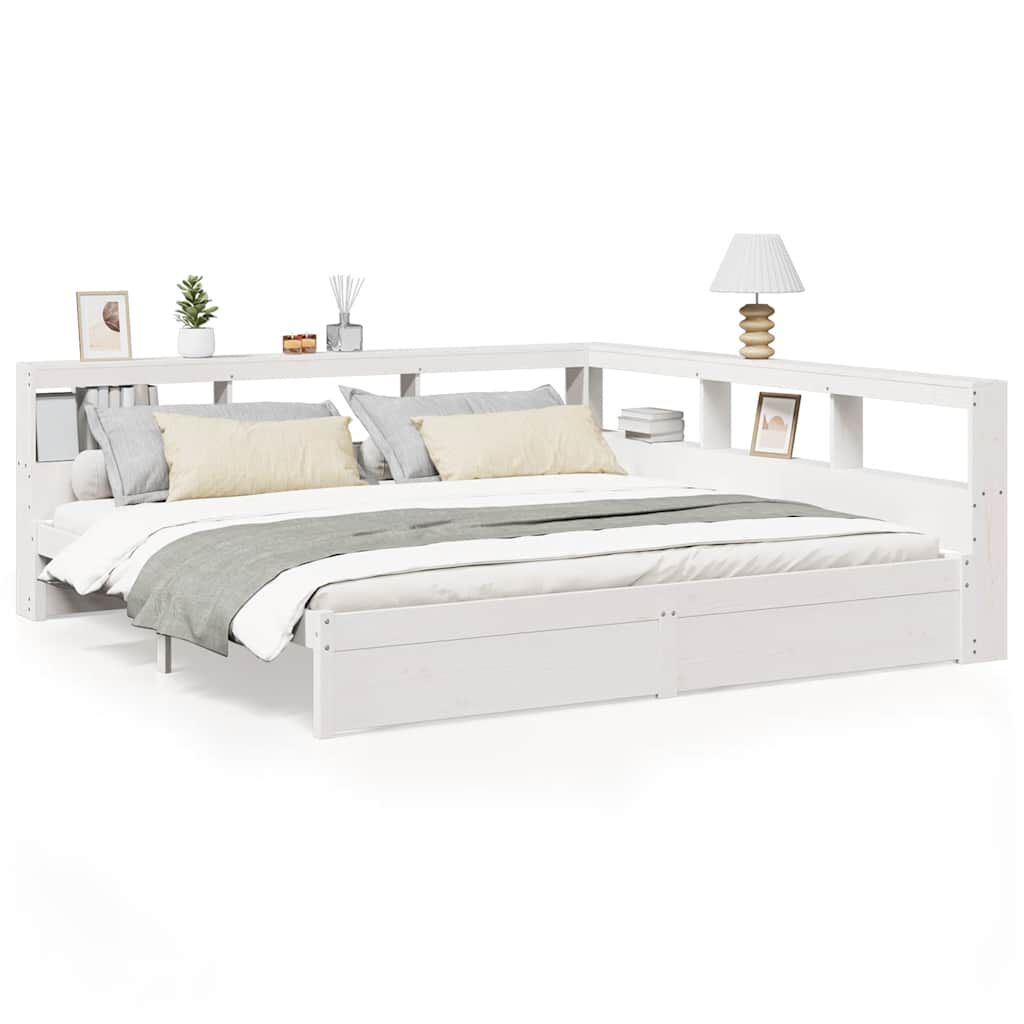 vidaXL Rúmgrind með Bókahillu án Dýnu Hvítur 180x200 cm Gegnheil Fura