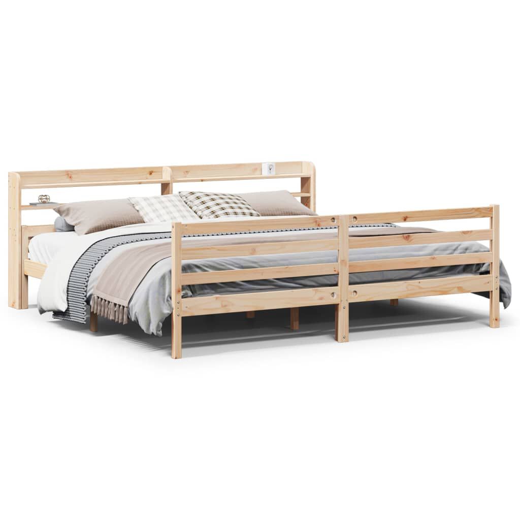 vidaXL Rúmgrind með Höfuðgafli 200x200 cm Gegnheil Fura