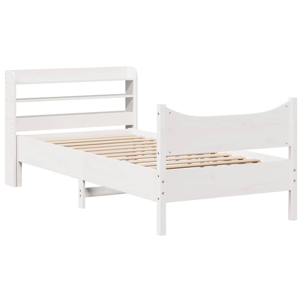vidaXL Rúmgrind með Höfuðgafli Hvítur 75x190 cm Gegnheil Fura