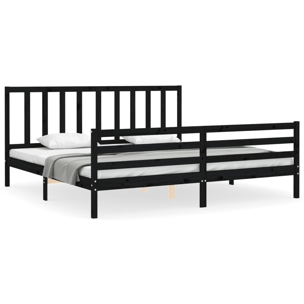 vidaXL Rúmgrind með Höfuðgafli Svartur 200x200 cm Gegnheill Viður
