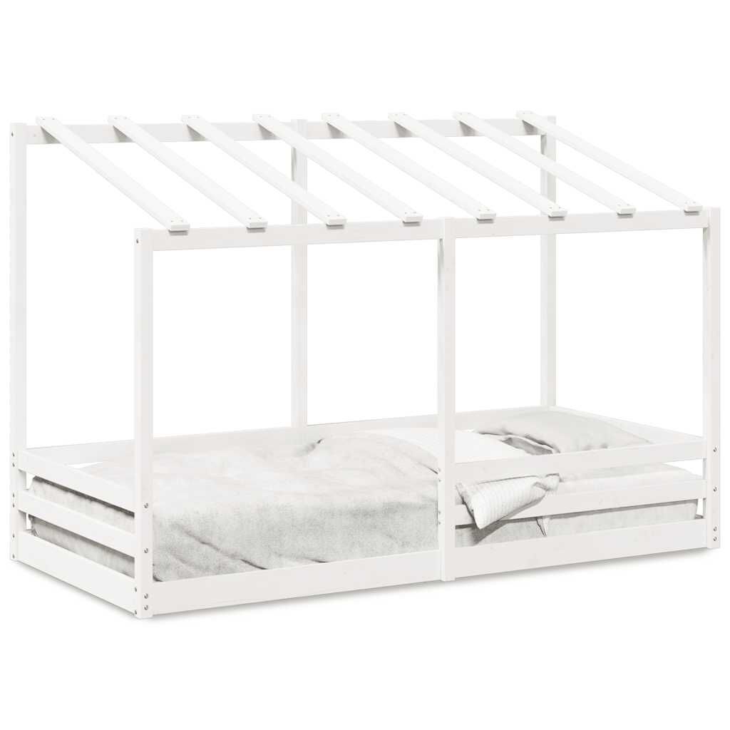 vidaXL Rúmhiminn á Barnarúm Hvítur 100x200 cm Gegnheil Fura