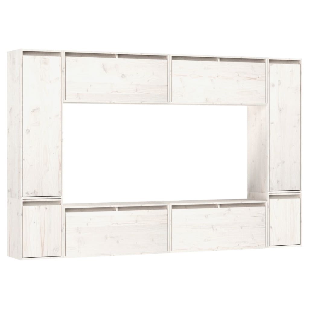 vidaXL Sjónvarpsskápar 8 stk. Hvít Gegnheil Fura