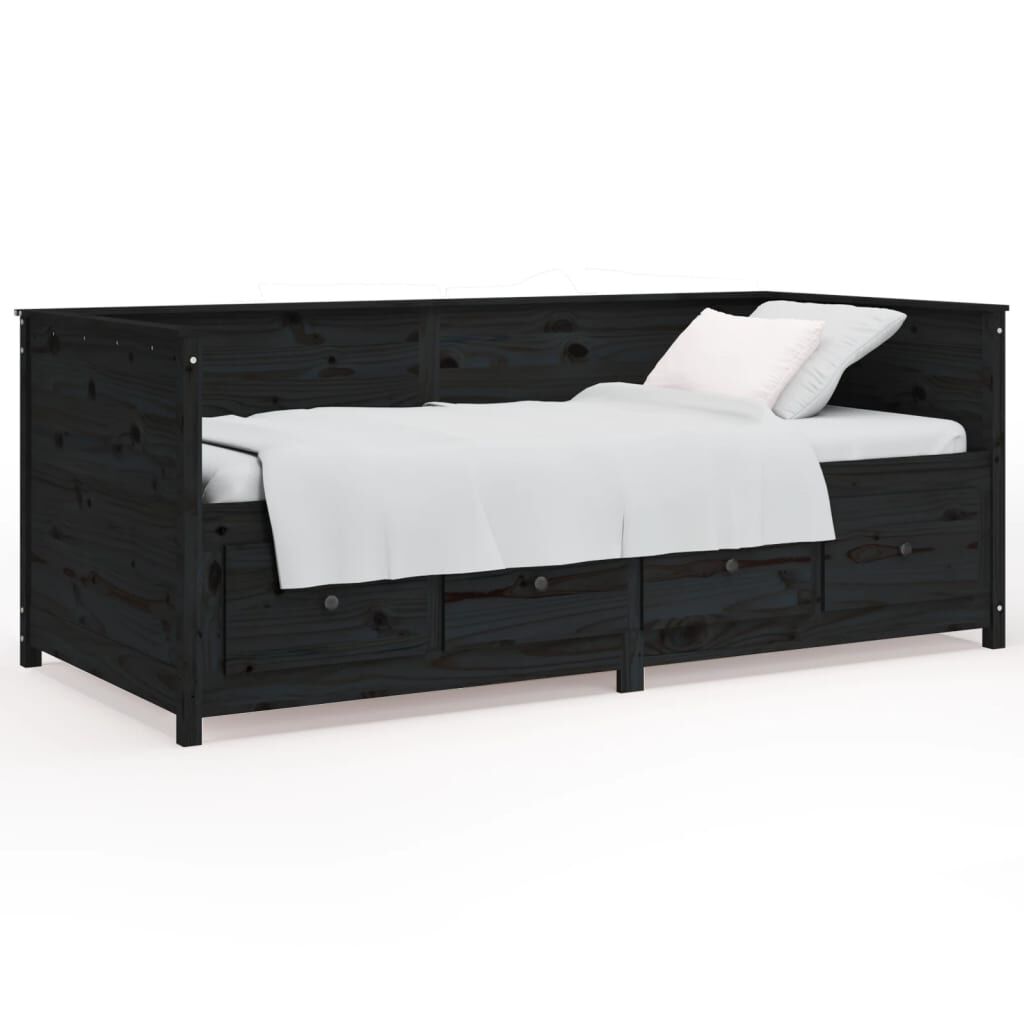 vidaXL Svefnsófi án Dýnu Svart 90x190 cm Gegnheil Fura