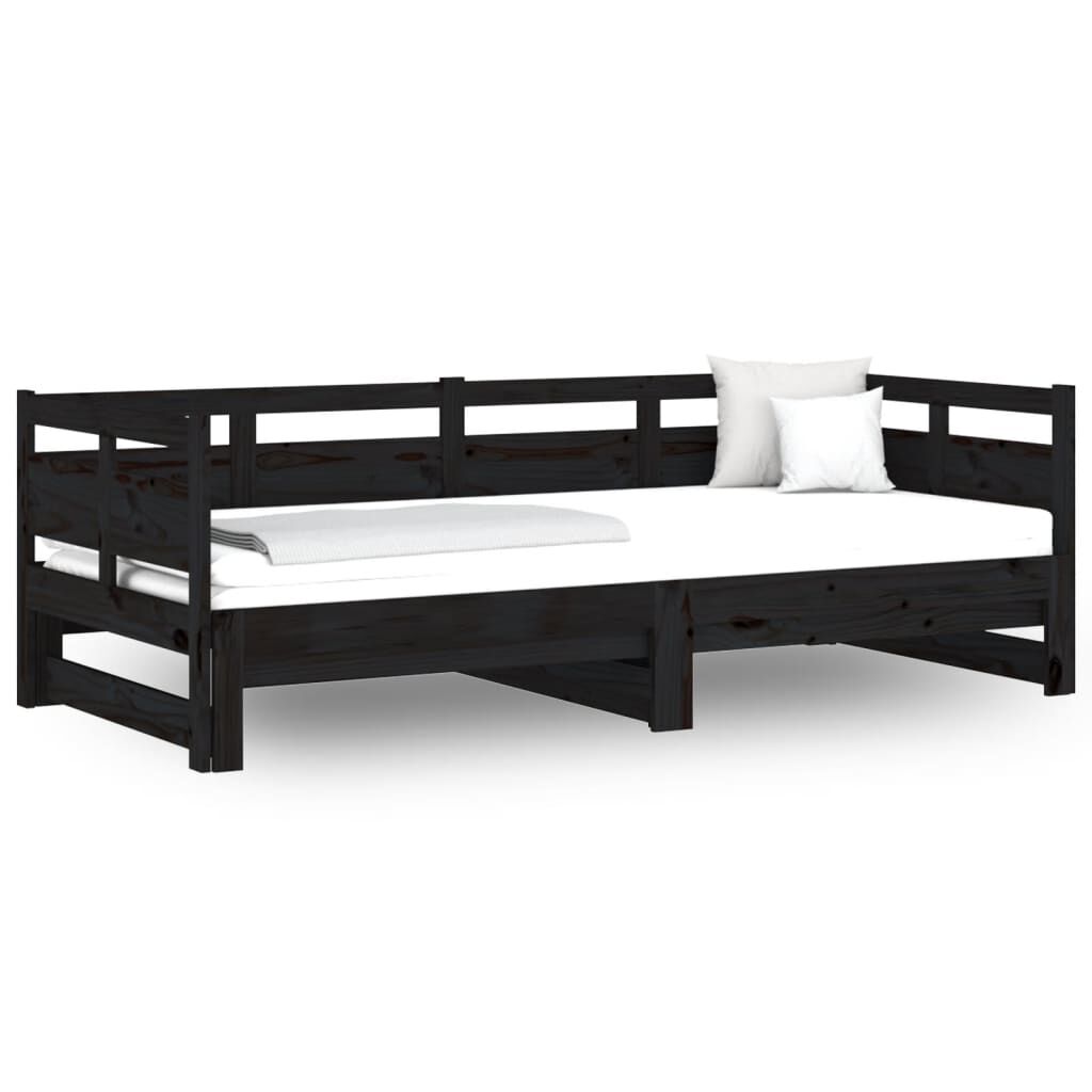 vidaXL Útdraganlegur Svefnsófi Svartur Gegnheil Fura 2x(90x190) cm