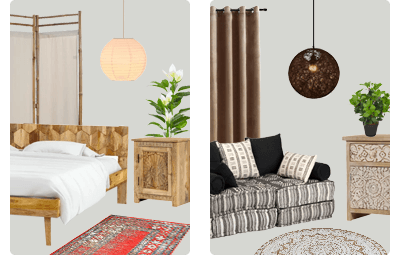 Engar tvær bóheminnréttingar eru alveg eins. Þetta er hinn fullkomni stíll ef þig langar að skapa eitthvað einstakt. Bóhemhúsgögn eru úr náttúrulegum efnum, s.s. rattan, bambus, víðitág, jútu, sísal og endurunnum við. Þessi stíll leyfir þér að endurupplifa þá staði sem þú hefur heimsótt á ný með því að sýna þessa aukahluti á flottum skáp eða hliðarborði.