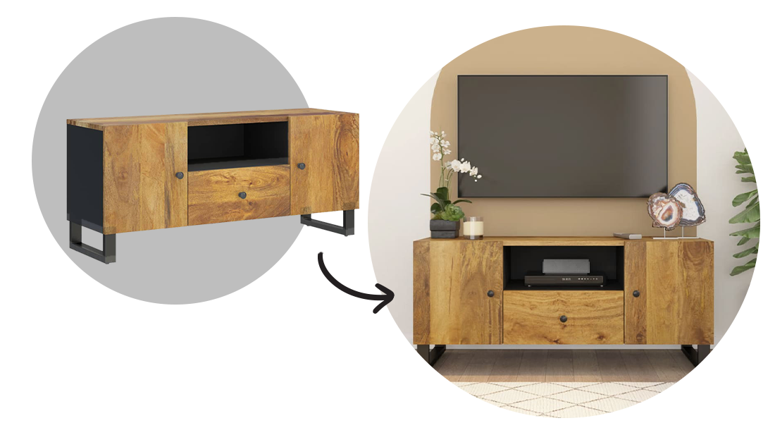 Það er algjörlega ómissandi að vera með mismunandi áferðir í innréttingunum! Þú getur til dæmis blandað saman ofnum gólfpúðum, flosuðum teppum og sjónvarpsskáp úr endurnýttum við. Þetta setur dýpt á rýmið og gefur því áhugaverðan blæ. Misstu þig í lögunum!